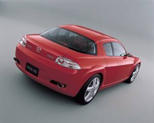 今年一月於底特律舉辦的北美車展中,MAZDA推出了最新版RX-7後繼概念車,使用雙轉子引擎的動力系統,持續在新款車中發燒,最大馬力輸出250匹,一般相信這將是最接近量產版本的「RX概念最終式樣」,與以往不同的,該車使用了對開式「Freestyle door system」四門設計,縮小的車體和加大乘坐空間以及中置引擎、後輪驅動設計,都是新款車最大的特色。這輛車使用基準,沿襲自過去推出的概念車「RX-EVO LV」,這輛RX-EVO LV是在1999年十月的東京車展中發表,之前也在上一屆北美車展中出現過。外型主要設計者為馬自達橫濱開發部的Yoichi Sato,原廠表示無B柱這種四門設計,不僅拓展了進出車輛便利性,也有效增加了跑車空間格局,為以往印象中;狹隘的跑車座艙開拓了新視野,四人座2+2設計在過去高性能化又講究造型的跑車身上,僅是徒具象徵性的角色,對於乘坐功能是一點幫助都沒有。而MAZDA如今這項概念,為高性能運動車締造另一波空間詮釋。至於RX-7後繼開發工作,早在1993年起便即展開,一套新開發的車體和底盤搭載於「RX-01」概念車上,於1995年東京車展中首度現身,之後經過多次改良,一度傳言將終止計畫,不過在歷經美國FORD車廠併購MAZDA後,充裕的資金為該車打造了新契機,如今最接近完工的概念車「RX-8」終於出爐。