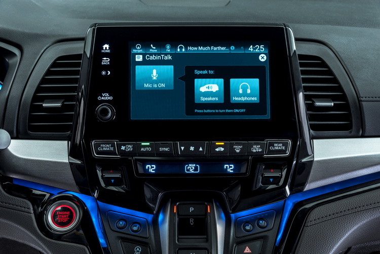 以HONDA自行研發的Display Audio操作系統為核心,在八吋螢幕上可以更直覺地透過客製化app來操作各種影音與通訊功能,同時也支援 Apple CarPlay與Android Auto等行動裝置整合系統。並透過4G LTE、Wi-Fi或USB來取得更新;Cabin Watch功能則讓前座乘客可以透過八吋螢幕隨時「看」到後座乘客的臉,搭配Cabin Talk功能讓前座乘客透過二、三排座椅或後座娛樂系統的耳機來與後座乘客聊天。還可以透過智慧手機下載app,來控制車內的後座娛樂系統、空調系統或將要去的目的地傳送至衛星導航系統。