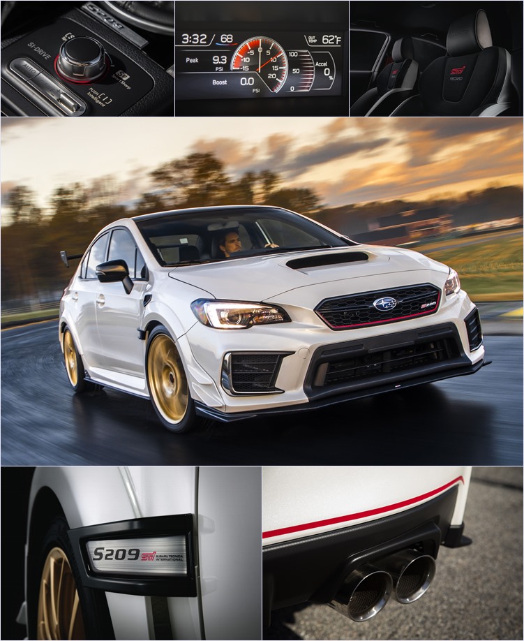 Subaru旗下的Subaru Tecnica International在北美推出限量200台的STI S209高性能車,除了是美國獨家販售車型,也是首次在美國上市的S-Line車款,更是有史以來性能最強悍的STI。S209是以WRX STI的EJ25水平對臥渦輪增壓引擎為基礎進行升級,除了擁有341hp的最大馬力,全車調校也全面競技化,包括納入HKS大型渦輪機、含大型尾翼的空力套件、加寬輪拱、升級懸吊、BBS 19吋輪圈、Brembo煞車系統等配備。