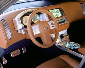 在動力方面,基於量產的考量,FX45搭載了Q45身上的那具4.5升V8引擎,動力輸出方面則估計最大馬力300匹、最大扭力41.476kg•m左右,搭配附手動換檔模式的五速自排變速箱與全時四輪驅動系統;懸吊系統則為後多連桿四輪獨立懸吊設定,當然,ABS、EBD、BAS等電子輔助裝置也都不會缺席於安全配備名單之中。