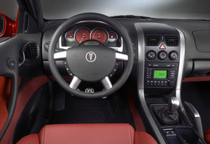 ![]() ▲PONTIAC GTO在外觀上,GTO延續了它的澳洲兄弟基本的雙門四座Coupe車型與寬低的體態,但在車頭與車尾部分的造形設計上,則依照美國市場當地的需求,換上了PONTIAC家族一貫的雙盾造型水箱護罩,原廠並配備了18吋大尺碼的合金輪圈,配合上輸出強大的動力心臟,才不枉其車身上所懸掛的『GTO』這三個字之威名。而呼應其外觀上的設定,GTO擁有一個非常運動取向的車室配置,採標準的2+2座椅配置,身為頂級性能車款的GTO在配備細節上非常完整,標準配備的真皮椅面跑車桶椅除了黑色之外,也有多種可以配合車身外殼色調的選擇,且不只是座椅本身,彩色編皮的範圍還額外擴大到包括車門內飾板與儀表板等區域上。