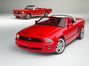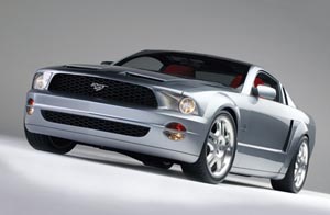 ![]() 由於車內尚為概念版本,因此車廠大膽使用各種前衛線條裝飾,銀、紅相間的內裝真皮佈局頗為搶眼,尤其方向盤採用的是1967年三輻式樣,更引發幾許復古情懷。動力單元方面,新Mustang採用的仍是4.6升V8引擎,不過為了強化性能,福特為其加裝機械增壓和中冷器設計,最大馬力輸出達到400匹馬力,扭力輸出亦達390 lb-ft。展出的車型中,銀色的Fastcoupe掀背車款使用六速手排,另一輛紅色的敞蓬式樣則是五速自排變速箱設定。為了襯托霸氣,兩車均採用十八吋五輻超大鋁合金輪圈,並加裝13.8吋BREMBO煞車碟盤。