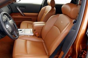 ![]() FX45豪華的車內空間在車廠的定義之下被分為三區,駕駛區內的八向電動調整座椅、DVD導航系統、將音響操控按鍵整合在內的真皮方向盤等,讓駕駛者舒服地專注精神於駕駛之上,車尾還配備了隱藏式攝影機,將車身正後方畫面顯示於導航螢幕上。副手區也有四向電動調整座椅和可調式扶手及獨立的空調控制。至於後座的「遊樂區」則少不了DVD播放器、無線耳機與閱讀燈等,後座獨立的出風口則設在B柱之上。後座座椅與許多SUV一樣可以向前翻倒或甚至快速拆卸來增加行李廂的空間,比較炫的地方則是尾門具有電動開啟機構,所以想打開尾門只要動手指按下按鈕即可,關門時也有輔助關閉裝置幫你節省力氣。