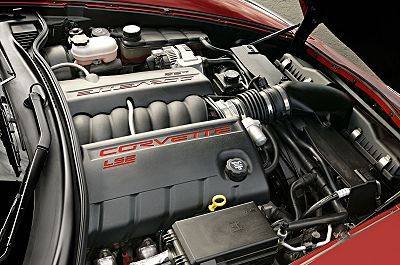 ![]() C6變速箱仍使用Tremec六速設定,但輕量化飛輪有效提升加速反應,換檔行程也短了一吋角度亦重新修改,以迎合各類型身材的駕駛者。至於自排變速箱,則選用編號4L65的自排系統,針對上升的馬力設計小組特別強化其對高轉速的適應與耐用性。引擎配置方面,採前中置引擎設計的Corvete,這一代八缸動力單元減輕了15.4磅,衝程加寬四吋、壓縮比推進至10.9:1,進氣系統空氣流量增加三成,材質更硬的汽門彈簧和改良後的正時鍊條、汽門挺桿,增加汽門揚程,此外排氣系統比過去亦輕了33﹪,可看出開發小組借用相當比例的技術,來改善C6的動力單元。引擎位置向前推進0.6吋,但因軸距則增加到2685mm,重量分配維持原始設定,並不會影響到整體協調性。