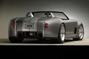![]() 當天發表會上,也出現了一位重量級貴賓,那就是一手創造Cobra傳奇的Carroll Shelby!福特集團這邊,則由現任主席兼執行總裁Bill Ford代表公司,歡迎這位Cobra之父回家,與該集團攜手打造性能神話。從各個角度可以觀察,這輛車保留了相當程度的原創性,包括肌肉線條、車頭水箱罩與頭燈總成等,不過融合新時代造車觀念與空力效果,這款Cobra concept車體變得更飽滿、厚實。仍採用標準雙座設計、無側窗設計也沒有現在被列為標準配備的音響、置杯架或可折疊車頂。由於開發時間短促,該車借用FORD GT許多元件,包括車身結構及懸吊減震系統等,有限的人力資源Cobra concept仍趕在限期完工,並完成長達100英哩巡航測試。