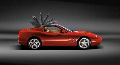 ![]() 借用FERRARI旗下575M Maranello基礎,Superamerica亦採用F1概念手自排變速系統,引擎室內的12缸動力最大輸出540匹馬力,車系還能選用GTC運動套件,其中包括碳纖維陶瓷煞車組。車體本身,Superamerica選用碳纖維結構,儘管採用電動硬頂但維持原置物空間,另後擋風玻璃也會在敞篷狀態時延伸,變成一塊擾流片,以防止外界氣流導入車室內。