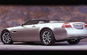 ![]() ▲CHRYSLER 300 Hemi C在本屆底特律底特律車展一片由卡車、SUV與不上不下的混種車構成的概念車海中,DAIMLER-CHRYSLER所推出的300 Hemi C概念車就顯得非常的與眾不同與出類拔萃。300 Hemi C是一款高性能、頂級豪華設定的敞篷跑車,且與同廠的量產房車300M相同的是,300 Hemi C也是一款以50至60年代CHRYSLER著名的『字母車』(Letter Car)家族概念延伸來的現代車輛。滿載懷古悠思的300 Hemi C與1957年時著名的CHRYSLER 300 C Convertible同樣,是一款純美製、搭載大排氣量V-8引擎、後輪驅動的豪華敞篷車,造型上基本上是取材自300M房車,300 Hemi C配備有尺碼非常嚇人的前19吋、後20吋大型合金輪圈,以及更為劍拔弩張的輪拱線條。300 Hemi C車長5029mm,較目前CHRYSLER品牌旗下唯一一款的敞篷車Sebring Convertible多了約14公分的程度,而其軸距也較Sebring多了25公分有餘,為2972mm。