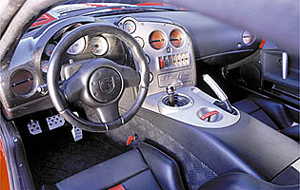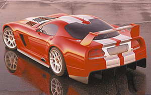 ![]() ▲Viper GTS/R是一輛理念源自GTS-R賽車的道路版概念車。最令人關心的動力方面,Viper GTS/R使用的仍然是前代車款上那具排氣量高達8.0升(7997cc.)的超大型OHV V-10引擎,源自於DODGE Ram卡車上的這具引擎在搭載於Viper上後已經改採鋁合金材質製造。但在這次的概念車上,更進一步地採用了源自於賽道上的乾槽式(Dry Sump)油底殼,乾槽式油底殼能夠在車輛高速過彎、承受極大的離心力時,保持機油潤滑系統的正常運作。在車廠的進一步調校下,GTS/R的輸出從原本的450hp之最大馬力與67.8kgm之最大扭力,提昇到500hp與69.2kgm的水準。現行的Viper上搭載的六速手排變速箱也被GTS/R流用,根據原廠的估計,多出的50hp動力能夠讓GTS/R在3.75秒內完成0-100km/h的加速,極速則超過200mph(320km/h),在以往這可說是超跑級的跑車才有能耐達到如此的境界。