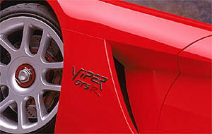 ![]() ▲在工程師的努力下,GTS/R擁有比上一代車款更為低寬流線的體態。蘊含大量賽車概念的Viper GTS/R全車的結構與鈑件都已經過相當程度的修改,它的鋁合金懸吊系統是與GTS-R賽車共用,但是在軸距方面增長了約3吋(76mm),輪距也變寬了2吋(51mm)。GTS/R的底盤高度較現行車款降低了2吋(51mm),而車身高度(門檻到車頂)也減少了1.5吋(38mm),然而由於重新設計的A柱結構位置向前移動了3吋左右,提供了更充足的車門長度,因而改善了駕駛人與乘客進出車內外的便利性。GTS/R輕量化的車體是由鋁合金製的空間樑架(Space Frame)結構作為基礎,外覆以重新開模製造的一體成形碳纖維車殼而成。車廠替GTS/R設計了一組前19吋/後20吋的巨大尺碼輪圈,並且搭配285/30ZR19與335/30ZR20尺碼的寬幅跑胎,而直徑高達14吋(356mm)的四活塞卡鉗通風碟提供GTS/R充足的制動能力。