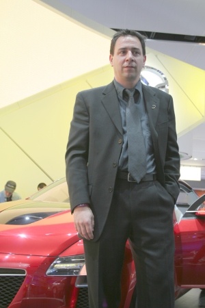 ▲負責Kabura外觀設計的Kenneth SawardMAZDA似乎洞悉市場商機,負責外觀設計的Kenneth Saward受訪中告知,Kabura根本不需要去接替RX7位置,更無需去拉高價格搶食市場,以低成本開發平價跑車方為主旨,因此Kabuya本身搶攻的,應該會是HONDA Civic Si、SCION tC等雙門入門跑車盤據的市場。