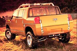![]() ▲FORD Equator在這一屆的底特律北美車展中,以美國三大為主的眾車廠最關心的焦點,莫過於在北美地區市場佔有率超越一般房車的SUV與卡車市場。為了不讓對手如GM與DAIMLER-CHRYSLER專美於前,FORD也在車展中展出了他們的『跨種車』概念。如同對手車廠以現有的卡車系列之加長車廂版本作為基礎,進一步開發出介於卡車與SUV間的叫lash;能性車型,被FORD命名為『赤道』的Equator也是一款以卡車作為基礎的概念車。作為開發基礎的是FORD旗下超強人氣的F-Series卡車家族,以F車系入門的F-150卡車那128吋(3251mm)軸距長的底盤為基礎,Equator擁有和F-150相近的車長與車寬,但是卻採用了Super Duty F-350車型的加寬車身,以提供更充裕的車室內空間,以及孔武有力的視覺印象。