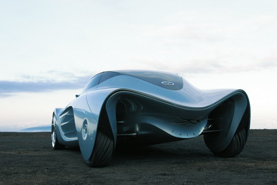 ![]() ▲車尾呈現ㄧ個M字形,上面還有「大氣」的漢字圖形MAZDA Taiki採用前置引擎後輪驅動的方式呈現,後輪外側整個背包覆起來,車尾形成一個大大的M字型。原廠工程師表示這樣的車身線條不是為了譁眾取寵,而是考量過空氣力學的的設計作品。此外這部設定2人坐的為概念車也裝上MAZDA新一代的轉子引擎。
