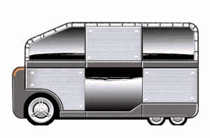 ![]() 首先他沒有方向盤、油門煞車踏板等突出物,沒有中控台、儀表板,更沒有輪拱。為了避免輪拱的形成,Unibox採用了小型雙後輪的設計,如此後輪的高度就比地板低,當然車室內就一片平坦嘍。既然車室內是一片平坦,那就應該是一部絕佳的車床才是,但~透明的車身當場讓人慾念全消,所以HONDA就沒替Unibox裝上全套可鋪平的椅子,反而裝上四支看起來像OA辦公椅的筒椅,而且座姿還很端正說,還宣稱這樣的坐姿最是輕鬆了,可是全部都被看光光了,還輕鬆的起來嗎?或許有人就是享受這種感覺吧。