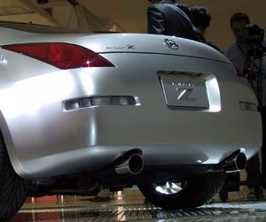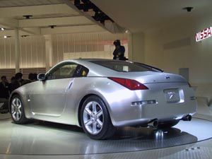 ![]() Fairlady Z揚棄了上一代車款所使用的3.0升雙渦輪動力系統(VG30DETT),改搭載3.5升排氣量的VQ35DE引擎,這具原本就擁有非常高評價,廣為北美NISSAN車系採用(包括QX4,I35與即將登場的G35)的V6引擎引擎,在經過進氣部分重新設計,與採用上CVTC(Continuously Variable Valve Timing Control,連續可變氣門正時控制)機構後,動力又更進一步提升,無論是高轉速時的動力爆發、還是低轉速時的充沛扭力,對這具引擎而言都是游刃有餘。另外,由於使用電子控制節流閥與高剛性的汽缸體,VQ35DE引擎擁有不負跑車名聲的運轉聲浪。而如同動力系統的進化,全新的六速手排變速箱也取代了上一代Z32車款搭載的五速手排,由於一到五檔採密齒比設定,讓Fairlady Z擁有非常優異的加速表現。整具變速箱在開發的過程中,對於每個零件的體積與重量都非常考究並使用上最先進的結構分析技術,因此新變速箱無論在體積或是重量上都較舊款精簡許多,而無視於它多了一個檔位。另外在換檔品質方面,車廠特別針對變速箱的換檔動作(縱向移動)的迅速性,以及檔位(橫向移動)的清晰度,作了很多考究,獨特的材質選用能吸收撥叉在縱向移動時產生的震動,但又保留橫向移動時非常直接的手感,滿足跑車車主對這方面非常考究的要求。