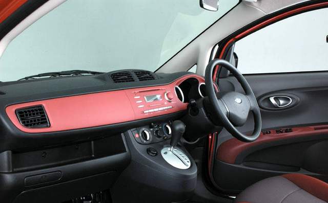 ![]() 由於R1在設計上是以兩名乘客乘坐為主,完全不考慮後座乘客的乘坐舒適性,因此車長:3285mm、車寬:1475mm、車高:1510mm、軸距:2195mm的車身尺碼,不管是車長或者軸距都比R2還要分別縮短110mm與165mm,獨特的造型也幾乎讓人有種脫離現實的感覺,十足像是部放大成真車Size的玩具車。R1的動力系統,包括引擎與CVT無段變速箱都是流用自R2。不過話雖如此,兩者的商品概念與鎖定的目標客層都大不相同,R2是以年輕女性為主要目標所開發,而R1所希望拉攏的客層則是子女都已在外成家立業的五十歲左右的團塊世代,作為他們家中的第二部車,讓老夫婦兩人輕鬆出遊,而非單純的R2三門版。