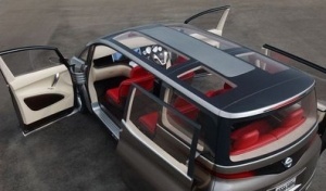 ![]() 概念車Amenio是另一重頭戲,車身尺寸為4900×1900×1830mm,軸距為3100mm。該車與NISSAN另一廂型車Elgrand相比,雖然車身長、寬增加,不過車高降低了80mm。該車結合運動外觀卻擁有六座設計,是屬於Multi People Carry為主的作品,尤其在乘坐環境方面,比照TEANA理念特別包裝了ModernLiving Concept摩登生活概念於其中,以吸引講究家庭生活品味的消費族群。
