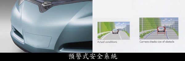 透過車頭的攝影機和感應雷達偵測前方車輛或障礙物,如果系統判斷有發生碰撞的危險時,會立刻警告駕駛者,並在駕駛者踩下煞車踏板時自動增強煞車力道,安全帶也會預先束緊將乘員固定住