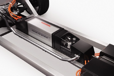 如果想要增加氫的儲存容量,一般的作法是利用高壓來將氫填充入儲存瓶,但這種作法對於儲存瓶材質的抗壓能力會有更高的要求,使得儲存瓶的重量增加。HONDA的新世代高壓氫儲存瓶在瓶內內藏可吸收氫的材質,在350Pa的填充壓力下,就可達到之前二倍的容量,而非以700pa的高壓來填充,兼顧體積小、重量輕、容量大及安全性等優點