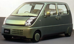 EZ-U( 概念車)![]() ▲EZ-UEZ-U是一部追求新時代造形的小車,在嬌小的車身之中盡可能地追求最大的車室空間,也因此車長只有3395mm的EZ-U卻擁有2460mm的軸距長度。另外,在環保的考量之下,也採用了高效率的引擎與ecoCVT傳動系統。內裝方面,前後排均為可做前後、左右向滑動的長形座椅,並且可滑移至車外,讓年老的乘客也能夠輕鬆地上下車。