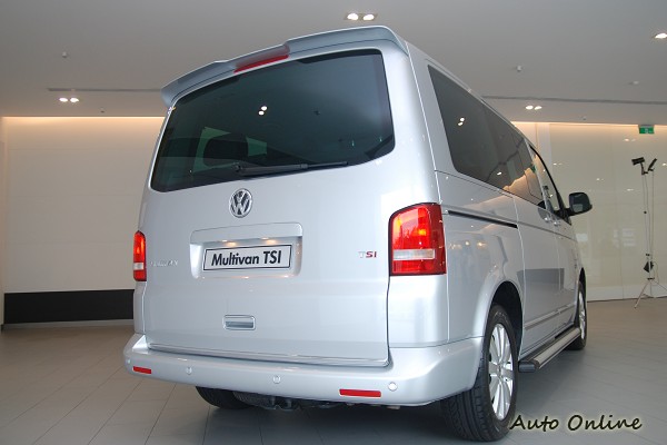 Multivan TSI配備著價值超過新台幣10萬元的原廠外觀運動套件組,其中包含能提供車輛行駛下壓力量,有效降低車輛重心並改善車身周圍空氣流動以提昇行駛穩定性的後車頂尾翼、具備運動外觀並能在高速行駛過程中有效減少風阻,以便保持車身穩定的前保桿下擾流板及可讓後艙乘客更安全上下車,以不銹鋼包覆嵌入式橡膠墊的側保桿。
