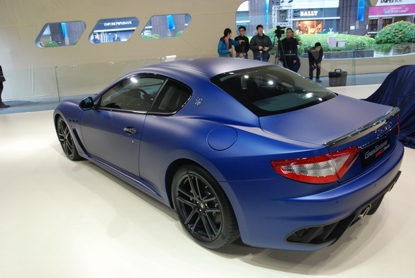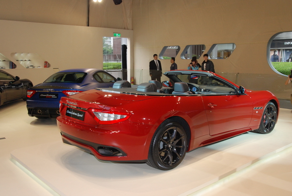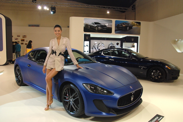 也許早有先見之明知道籌辦車展的策展公司很糟糕,按照往例台灣蒙地拿轄下的兩個廠牌Maserati與Ferrari今年依舊選在101舉辦自己的展覽。今年還特別移師場地更大的戶外中庭搭帳棚舉辦,光Maserati展出的五台車款總售價就超過4億,經過101別被這耀眼的海神三叉戢給閃昏了。 在展出的五台車當中有Quattroporte Sport GT S、Quattroporte S Executive GT以及GranTurismo S Automatic。其中又以消光藍的GranTurismo MC Stradale和首次在台發表的GranCabrio Sport敞篷車最為吸睛。