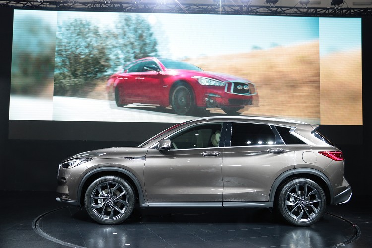 品牌鉅作INFINITI QX50 亞太區首度現身![]() 與先前2017年初於北美車展現身的QX50 CONCEPT相比,將於亞太區首度現身的全新品牌鉅作INFINITI QX50擁有幾乎與概念車完全如出一轍的外型美學,大膽地將概念車具體實現於量產車設計。全新INFINITI QX50車頭的雙弓式水箱護罩、有如冰塊般透徹的LED頭尾燈組、以及由車側前方延續至車尾的流體運動折線和新月型D柱設計,皆呼應INFINITI新世代設計語彙「POWERFUL ELEGANCE」的設計理念。