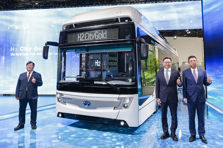 TOYOTA總代理和泰汽車12月28日於《2024台北新車暨新能源車特展》舉辦TOYOTA H2 CITY GOLD預賞會,搶先亮相即將於明年正式上市的TOYOTA低底盤氫能巴士—H2 City Gold。此款車型搭載TOYOTA的氫燃料電池系統,10分鐘即可充滿37.5 kg的氫氣,提供450km的極佳續航力。