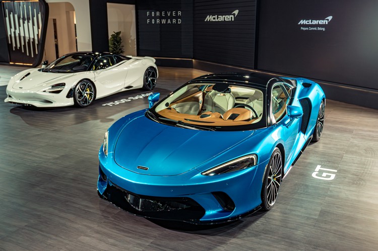 McLaren展區以簡潔俐落線條設計帶出品牌率性風格,台灣總代理永三汽車展出甫於第4季抵台的750S Spider與750S Coupe,以及首款量產油電混合車款Artura,另外,適合日常駕馭的跑旅GT也出現在展場中。