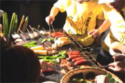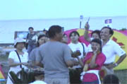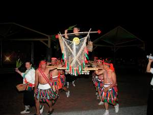 傳統迎賓舞 溝通無隔閡▲在阿美族傳統隆重的迎賓舞蹈中,晚會達到最高潮,賓主盡歡。在美麗的女主持人導引下,每個家庭都找到自己的烤肉區域,由於晚餐採用原住民特殊的「石板烤肉」法,採用上等的石材,下有熊熊爐火,上有美食佳餚,特別是道地的鹽漬野豬肉,令人垂涎三尺。不過要烤肉之前,還得高喊「我愛三菱」才可以開始,有影片為證,美食當前,參加活動的車主們只好脅迫於"淫威"之下囉...。