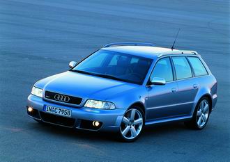 2000年中時登場,RS4是AUDI旗下的特裝車部門quattro GmbH以S4 Avant車款為基礎進一步開發出來的少量生產超高性能旅行車。搭載一具與S4相同的90度夾角、2673cc.排氣量的雙渦輪增壓V6引擎,但由於使用了容積更大的渦輪增壓器,再加上quattro部門進一步的引擎細節調校,讓RS4擁有381hp/6100rpm的超高動力輸出,與44.9kgm/2500rpm的充沛扭力,透過一具六速手排變速箱及AUDI引以為傲的quattro全時四輪驅動驅動系統,RS4正好能在4.9秒內由靜止加速到100km/h,極速則因為電子限速之故,而保持在250km/h的關卡。由於RS4的基礎、代號B5的上一代A4車系早已停產被取代,RS4的生產也在去年暫告尾聲,但使用新一代B6底盤為基礎所開發出來的S4乃至於RS4車款,仍然值得高性能車迷們引頸期待。