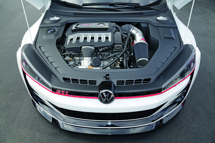 最讓人眼睛為之一亮的則是動力心臟部分,新Golf GTI是搭載2.0升排氣量的TSI直列四缸燃油缸內直噴汽油渦輪引擎,可輸出超過220匹最大馬力。不過這部概念車則搭載了3.0升TSI V6汽油渦輪引擎,加上全面性的徹底改裝,將最大馬力一舉榨到503匹/6500轉,是七代Golf GTI標準車型的二倍以上,最大扭力則達到57.1公斤米/4000-6000轉,並可在2000轉左右就可以輸出九成以上的扭力峰值,搭配DSG雙離合器自手排變速箱將扭力傳輸至四輪。