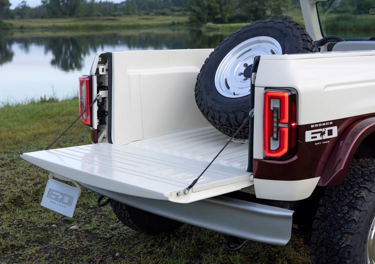 Bronco Roadster概念車的開發團隊希望將初代 Bronco「透過簡約帶來樂趣」的理念帶入現代。在現行第六代 Bronco 為基礎下,簡化了座椅、削減了地板,並採取了實用的後置置物空間。外觀方面採用了機械加工的 Fifteen52 Analog 輪圈,將尾門改為可折疊式並在上面壓印了「FORD」字樣。前後保險桿也改為更接近初代 Bronco 的設計。