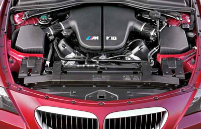 ![]() M6的動力系統,採用與M5共享90度夾角4,999c.c.V10引擎,可達到每公升100bhp的高輸出標準,紅線位於7,750rpm,而峰值力量活躍於6,100至8,250rpm之間。據了解,在3,500rpm扭力即達450Nm水準,而透過輕量化工程,整顆引擎本體重量不過240公斤。