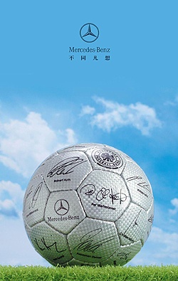 Mercedes-Benz足球精品 限量發行![]() 德國世足協會主要贊助廠商之一的Mercedes-Benz,特別展售多款世足賽限量精品,讓熱情的球迷在世足賽期間,穿戴揮舞限量精品,一如體驗親臨現場的興奮熱情。無論是烙上Mercedes-Benz logo隨時引爆激情的金屬哨子、黑底加上紅黃雙環的管狀氣球加油棒,或者是看球賽必備的德國加油旗,樣樣都可以讓守在電視機前面的球迷們為喜愛的球隊與球員盡情歡呼。