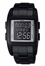 WIRED今年秋冬另一款數字型世界時區電子表,同樣以弧形線條融合方形設計,採用不繡鋼IP電鍍材質,整只錶以酷勁黑色的錶殼與鍊帶,搭配黑底反白的液晶數字化顯示,營造既神秘又前衛的時代感。