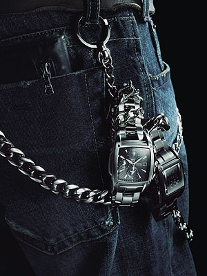 簡潔俐落的錶款設計,創意大畫面視窗空間,以搶眼的黑底反白,同時展現身多層次的質感與閱時的便利性。錶帶採用霧面拋光,大膽切割角度,粗獷地鏈結著錶身,卻不可思議地與手腕貼合。是時髦酷男最佳勁裝的表現。