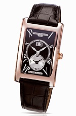 「Persuasion大日曆兩地時間」長方形錶款─簡潔易視,優雅自在的商務紳士![]() ▲型號:FC-325BS4C24<建議售價: NTD 72,500>大日曆錶款自九0年代推出後,持續獲得市場買氣的迴響,成為不褪流行的款式,兩地時間功能則是為因應世界地球村的趨勢,提供給往來不同時區經商、旅遊的消費者日益升高的需求,康斯登「Persuasion大日曆兩地時間」錶款可簡易調整兩地時間,長方形錶殼為求貼合手腕佩帶的舒適性,將錶殼以弧線延伸至錶耳,造型猶如拱橋,搭配精緻的面盤設計與多重視窗的配置,為整體錶款營造出斯文、典雅的風格。