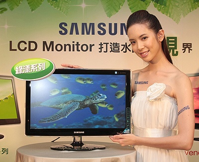 2009年Samsung全新旗艦新品EcoFit 綠漾系列以及Lavender 彩漾系列,不僅擁有ToC水晶透色絕美外型,ToC材質本身亦無無噴塗染鍍毒性,從生產、包裝、配送至回收,全產品週期皆符合 “Eco-friendly不損壞生態環境” 訴求,為目前引領LCD Monitor全新”視”代的時尚綠能科技指標。Samsung除了積極推出頂級綠色環保產品外,全產品線技術規格再大幅向上提升。台灣三星電子數位媒體事業部賴俊興協理表示,今年除新品EcoFit與Lavender外,既有Samsung LCD Monitor全產品、全尺寸,也將一次升級至50000:1的動態對比,在LCD Monitor全產品線到位策略下,相信今年亮麗的銷售表現。Samsung P2370G,23吋液晶螢幕,建議售價NT$8,999;Samsung P2350,23吋液晶螢幕,建議售價NT$7,888。