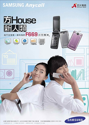 Samsung Anycall推CDMA摺疊新機F669,搭載全方位多媒體功能,融合簡約流線設計與金屬質感,搭配亞太電信快樂通資費方案,即可輕鬆體驗手機絕佳品味的魅力!此外,亞太電信亦推出全新促銷「三星POP音樂學院」活動,娛樂、溝通同步升級!