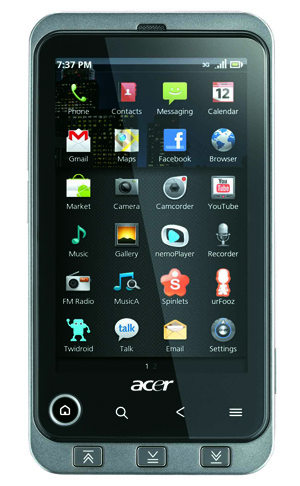 擁有薄型洗練造型的Acer Stream,內建3.7吋AMOLED技術的多點觸控電容式螢幕,寬大視角及高對比度,能在太陽光下呈現高解析度的清晰畫質;透過內建GPS衛星定位系統結合Google地圖,是最佳的導航工具。