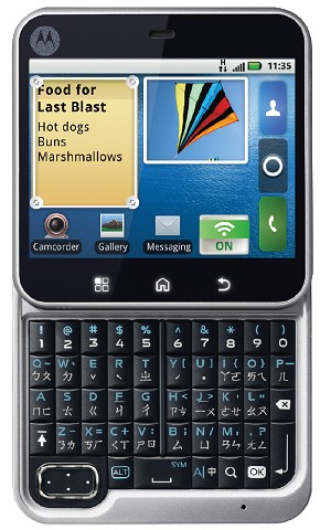 ![]() Quench XT5搭載AndroidTM 2.1,搭配觸控式螢幕及軌跡球設計,擁有絕佳的操作介面,並可透過3.5G HSDPA 7.2Mbps高速上網,以及當成3G數據機使用。若過年不想待在家,Quench XT5”觸觸”皆可上網,消費者可以找尋好玩與好吃的,讓新年增添多重樂趣。Flipout MB511則是全球首款採用方形側向旋轉設計的智慧型手機,也是最小的Android 2.1智慧型手機,搭配多色顏色背蓋,消費者可隨著心情更換。此外,搭配五排QWERTY鍵盤,媲美電腦鍵盤使用經驗,Widget並可隨手觸控縮放,打造更有型的智慧生活。