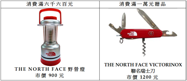 自即日起為感謝消費者對THE NORTH FACE的長期支持與愛護。 THE NORTH FACE各大直營門市舉行滿額回饋贈禮活動。凡消費滿六千六百元,贈送THE NORTH FACE戶外野營燈。消費滿一萬元贈送THE NORTH FACE VICTORINOX聯名瑞士刀。藉由擁有操作多元品牌經驗與實力的星裕國際也將持續拓展THE NORTH FACE於台灣的營運版圖,提供更優質且專業的品牌體驗並創造更為緊密互動的互動資訊給台灣消費者。