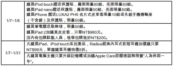 開幕同慶限定優惠![]() ▲百人排隊擊掌歡呼進入德誼信義威秀旗艦店領取限量Apple T-shirt開幕期間到「德誼信義威秀旗艦店」購買指定商品,將可獲得LUXA2 PH5名片式皮革套(價值NT$990元)等限量商品,1/7 上午11:30來店同慶即贈送開幕T-shirt,數量有限,送完為止。