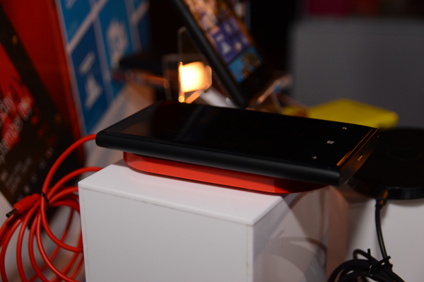 Nokia Lumia 920和 820都可搭配極簡純色設計的充電板,進行無線充電,符合Qi無線充電標準的Nokia Lumia手機,將可透過任何通過Qi認證的充電基站、底座或是其他可充電裝置進行無線充電,給消費者更便捷的使用體驗。