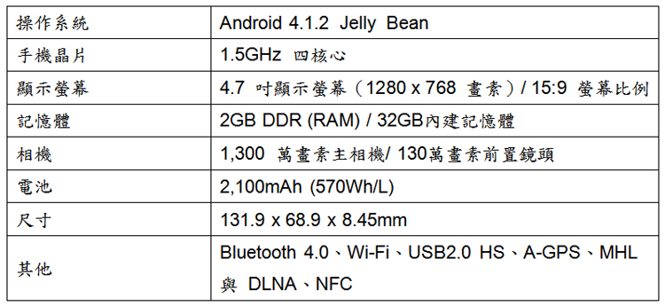 LG Optimus G 規格表