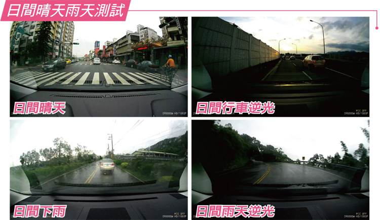 晴天與雨天測試![]() 由上方的原始截圖不難發現,DR500GW-HD在日間行車時所拍攝的畫面清晰表現不錯,面對逆光時雖然呈現的畫面會比較暗,但還是有一定的水準,距離較近的車甚至能看清楚車牌。而面對雨天的挑戰,雖然稍微受到雨水的影響,但是在畫面的清晰度上,仍然具有相當不錯的水平。