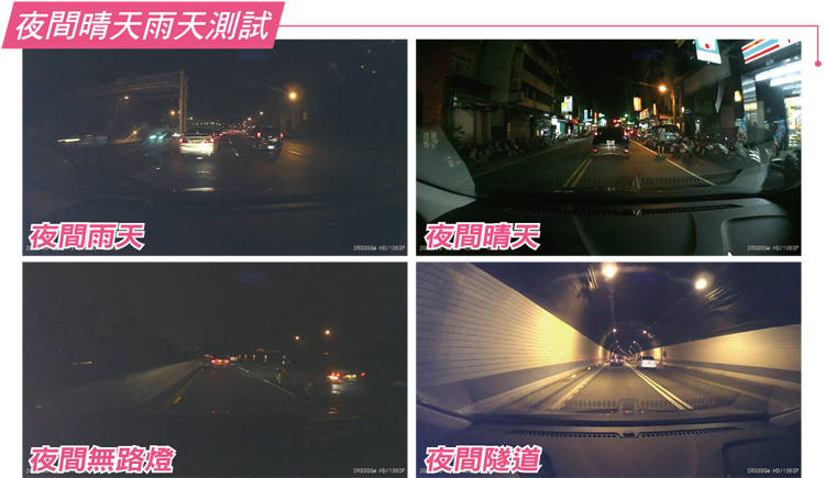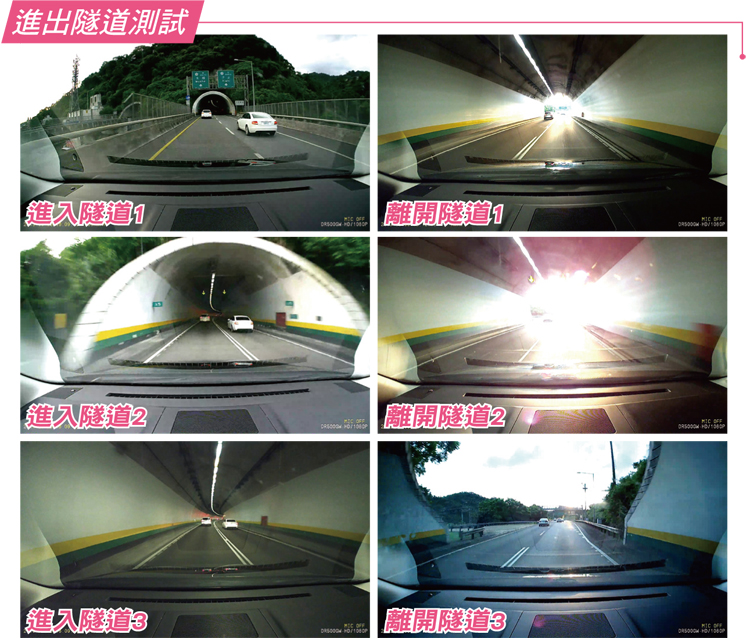 夜間晴雨天測試![]() DR500GW-HD在夜間的表現相當不錯,在無路燈的情況下,雖然畫面相對較灰暗,但是靠著車燈的照明仍可拍到清楚的影像,至於雨天和晴天的畫質,也表現得相當不錯,此外夜間隧道的部分,由於已經沒有很明顯的光線變化,因此也不會出現瞬間過曝的情況,不得不說口紅姬的能力真的不容小覷存在。 日間進出隧道測試