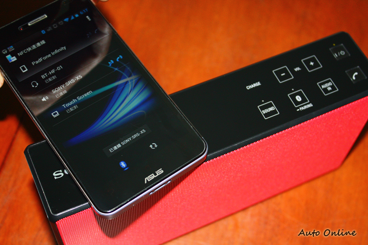 ![]() ▲SRS-X5具有USB插孔,必要時可以當手機的行動電源使用。至於在介面的部分,SONY SRS-X5所有的按鍵都設計在機身上方,除了電源鍵與接聽電話的按鍵使用實體按鈕外,其餘包含音量調整、音訊來源的切換都是採用觸控式的設計,雖然並非實體按鍵,但是在整體的操作反應上仍然相當迅速。至於在機身背面除了有電源與音源輸入的接點外,SRS-X5還配有USB的插槽,雖然它僅具備電源輸出的功能,但是能在播放音樂時同時透過USB插孔來為手機充電,也算是相當貼心的一項設計。 ![]() ▲SRS-X5除了電源與通話鍵使用實體按鈕外,其餘皆採用觸控式的設計。![]() ▲相較於藍芽耳機,可以接聽電話的藍芽喇叭比較少見。![]() ▲除了透過藍芽連線外,喇叭的背面也具有Audio in的音源輸入插槽。![]() ▲NFC近場通訊技術是SONY產品的必備功能。![]() ▲iOS系統雖然沒有支援NFC,但仍可使用藍芽進行手動連結。