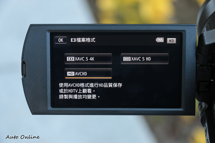 ▲除了基本的AVCHD格式外,FDR-AX100還增加了XAVC S HD與XAVC S 4K兩種格式。