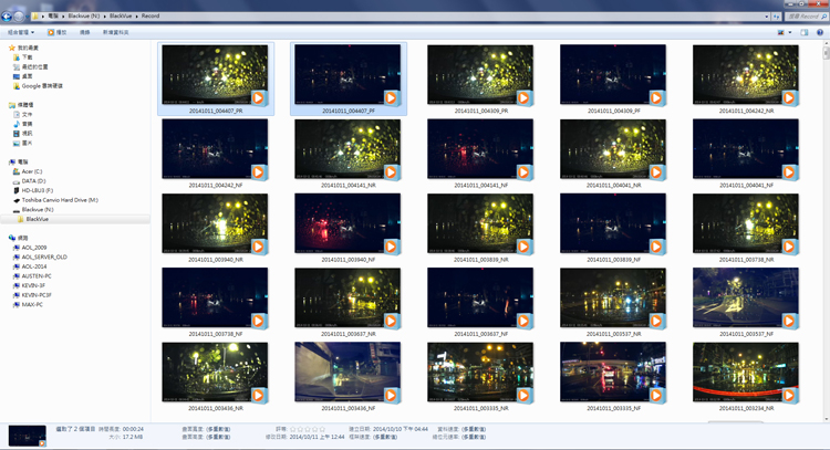 ▲因為雙鏡頭的關係,記錄的檔案會自動分類,NF代表前鏡頭,NR則是後鏡頭。